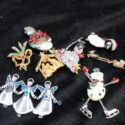 ![]() (LOT: G394) | ![]() Some beautiful Christmas brooches and pins. Three snowmen; one has dangling arms and legs, and a pewter one is marked K C & one that is loaded with sparkly stones. A Penguin, a Santa with sleigh from Avon, Three attached angels with blue stones, a gold tone manger and a vintage enamel floral bouquet brooch (Click Here to see full auction listing) Bidding opens on November 10, 2025 12:00:00 AM | |
