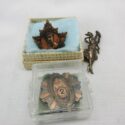 ![]() (LOT: M368) | ![]() Buckles and knives: Brass horse saddle, silver plate horse shoes with a turquoise stone and a metal star. Also 3 vintage pocket utility knives. (Click Here to see full auction listing) Bidding opens on December 29, 2025 12:00:00 AM | |