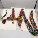 ![]() (LOT: X72) | ![]() Vintage Statement necklaces. One is a bold 22” long necklace with large stones (tubular, round & flat style) , some are glass and some may be genuine stones, with a silver tone toggle clasp. Small silver tag next to clasp tests as 925 and marked Get Wired and measures 20” in length. An antique style 18” long chain with an unusual assortment of glass and metal beads. There are several cloisonné beads, faceted beads, even a porcelain rose, glass beads and one egg shaped bead that is some type of gemstone. Two removable hammered style toggle clasps on each side. This one is unique; there are 2 toggle clasps on each side of the chain where the beads are & a red heart as a pendant. Finally, a 5 stranded 40” long necklace with colorful beads and silver-tone balls in between with a hook-style clasp. Seller is not sure what the beads are made of, but they are not made of wood. (Click Here to see full auction listing) Bidding opens on March 09, 2026 12:00:00 AM | |