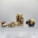 ![]() (LOT: X74) | ![]() A carved bear made of Septarian (Zoni) nodule stone often referred to as Dragon Stone. Composition of yellow calcite, brown aragonite, and gray limestone. These stones formed roughly 50 to 70 million years ago from fossilized mud and volcanic activity. Plus, 3 Japanese carved sculpture known as a netsuke or okimono. Old man stands about 2.75” tall, Ram like figurine is about 1.25” and a birds likely ducklings about 1.25” tall. The seller is not 100% certain of the true composition of these Japanese items, but are typically made from materials like ivory, wood, bone or horn. (Click Here to see full auction listing) Bidding opens on March 09, 2026 12:00:00 AM | |