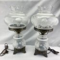 ![]() (LOT: X81) | ![]() A pair of gorgeous hurricane style lamps. Clear glass with frosted floral designs, bronze metal base and trim. They stand approx. 19” high which includes the globe. Great condition (Click Here to see full auction listing) Bidding opens on March 09, 2026 12:00:00 AM | |