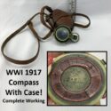 ![]() (LOT: X149) | ![]() ***World War 1*** British Officer’s 1917 Verners Pattern VIII Prismatic Brass Compass, French & Sons London with complete carrying case. Still working and in overall great condition. “Verners” and “VIII” inscribed on the top and “F-L” the serial # and “1917” inscribed on the underside. The case is inscribed “Leatheries Ltd 1917” The rubber ring on the underside is brittle and cracked. Both the case and the compass are marked with the owner’s name: W E Hutcheson, Huntsville, who was one of the founders of the Muskoka Wood Manufacturing Company in 1901. The only other listing with a complete case that came up was offered at GBP 190.00 or about 345.00 CDN. A great artifact and piece of Huntsville history. (Click Here to see full auction listing) Bidding opens on March 09, 2026 12:00:00 AM | |