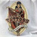 ![]() (LOT: X163) | ![]() Large “Solid Bright" Neon design style metal tattoo sign – 16”W x 22”H. (Click Here to see full auction listing) Bidding opens on March 09, 2026 12:00:00 AM | |