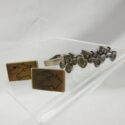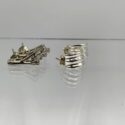 ![]() (LOT: P178) | ![]() Vintage gold tone metal, possibly brass with plating from the 50:s 0r 60”s. Features an etched or embossed design of two horses heads facing each other, racing neck to neck. Brand is Swank. Another set of silver tone metal tractors & matching tie clip. Stamped Pat Pending Mercury Industries. (Click Here to see full auction listing) Bidding opens on January 12, 2026 12:00:00 AM | |