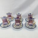 ![]() (LOT: P142) | ![]() A vintage Turkish set of 6 cups and saucers from Turkey. They are handcrafted using elegant purplish colored glass, with gold Gilded designs . Hot or cold liquids can be used for teas, wines, iced teas or juices. Saucers are 4” and cups are 3.5” tall ( holds 3.3 oz.) (Click Here to see full auction listing) Bidding opens on January 12, 2026 12:00:00 AM | |