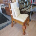![]() (LOT: P166) | ![]() Unique locally handcrafted chair of sleek turned oak. Gold brocade and cotton handcrochet upholstery. Great piece for entry, living, dressing room. Homage to classic styles of yore. Solid heavy piece, small cushion included. Excellent condition. 39”x22” (Click Here to see full auction listing) Bidding opens on January 12, 2026 12:00:00 AM | |