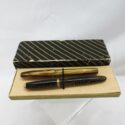 ![]() (LOT: P177) | ![]() Vintage Fountain pens. A Parker Vacumatic Fountain Pen. Classic Art Deco design with a stacked coin celluloid pattern. And a vintage Watermans Ideal, Fountain Pen, made in Canada. Both pens have 14K gold stamped on the tips/nibs. This one has a pearlesque celluloid brown design (Click Here to see full auction listing) Bidding opens on January 12, 2026 12:00:00 AM | |